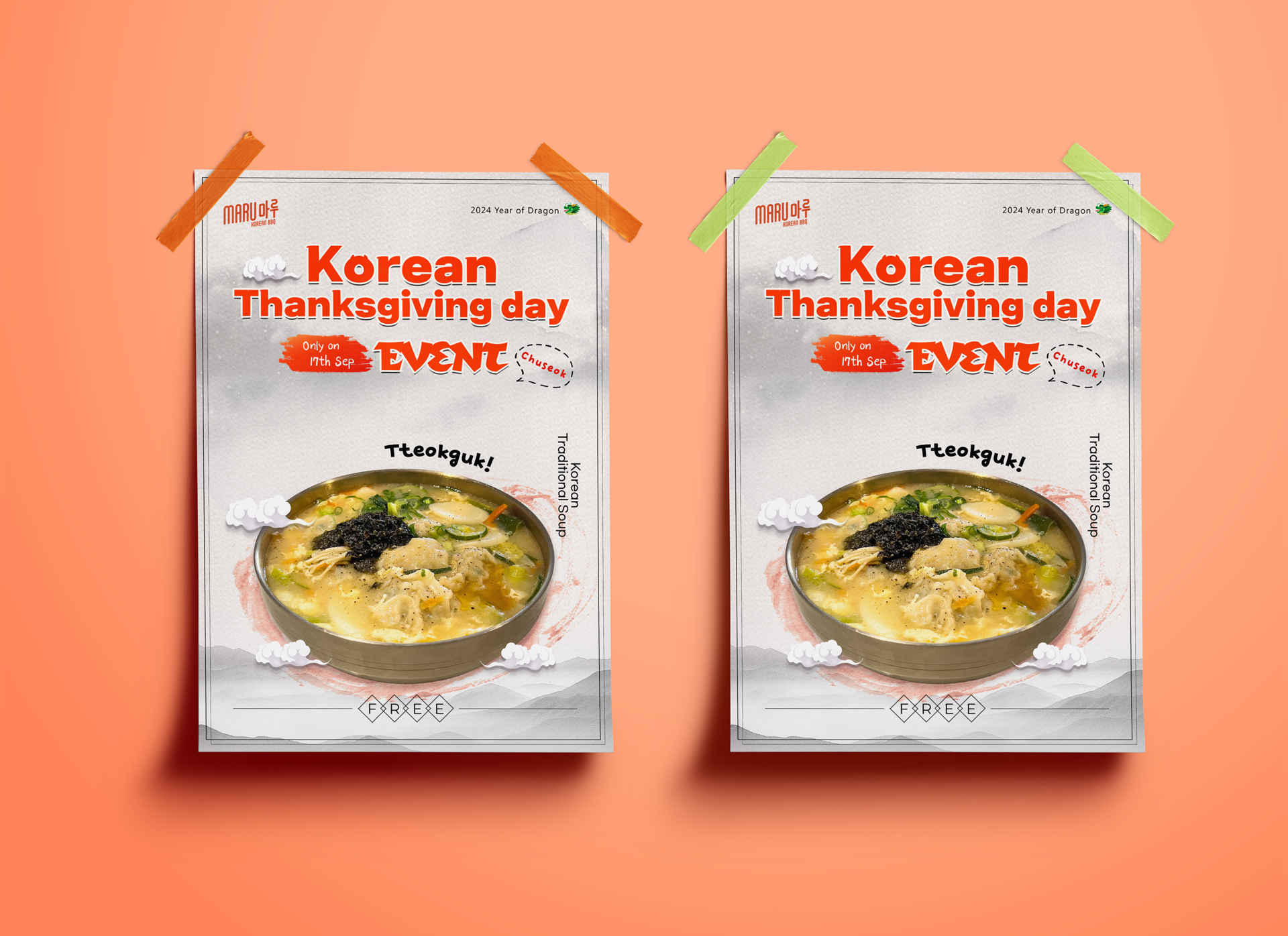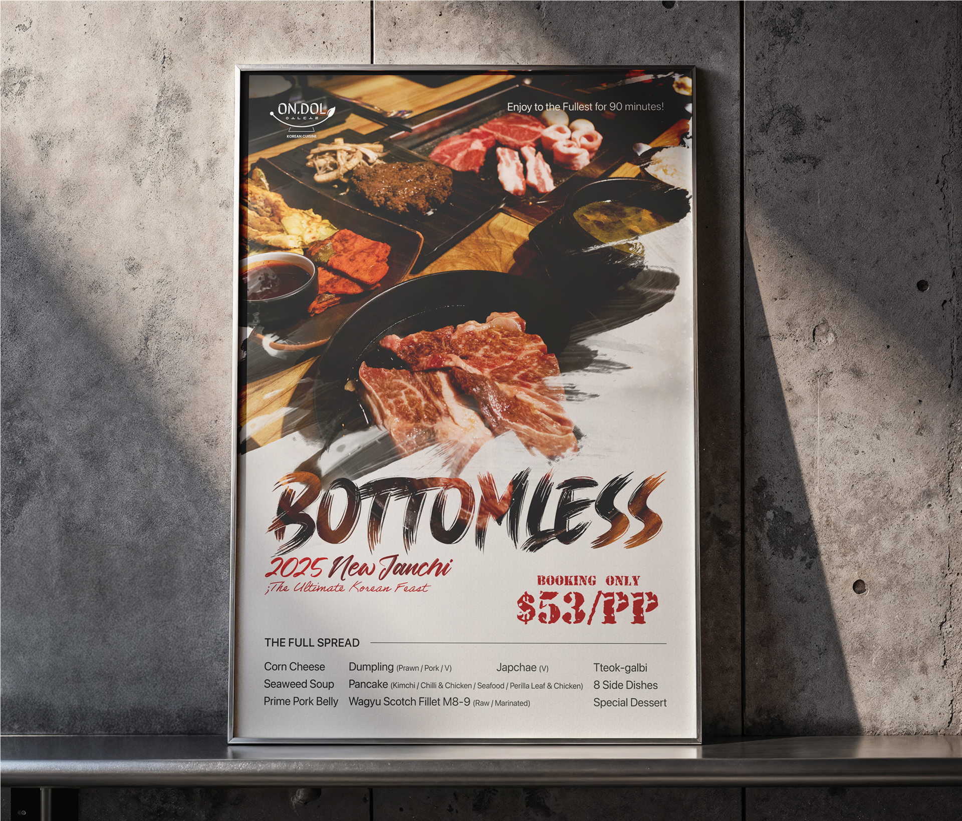 Posters were designed to align with the restaurant’s design guidelines and aesthetic vision, with sizing tailored to specific needs and professional print services provided.